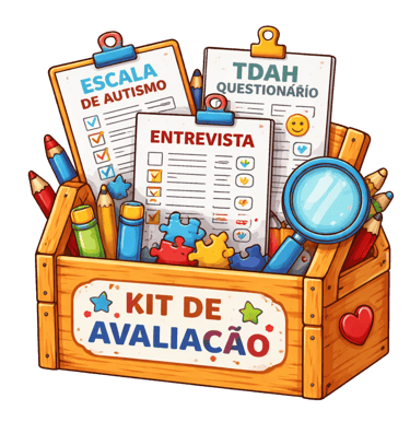 Como bônus, você receberá um kit de ferramentas de avaliação e acompanhamento dos sintomas do TEA/TDAH + manuais de interpretação e correção na prática.